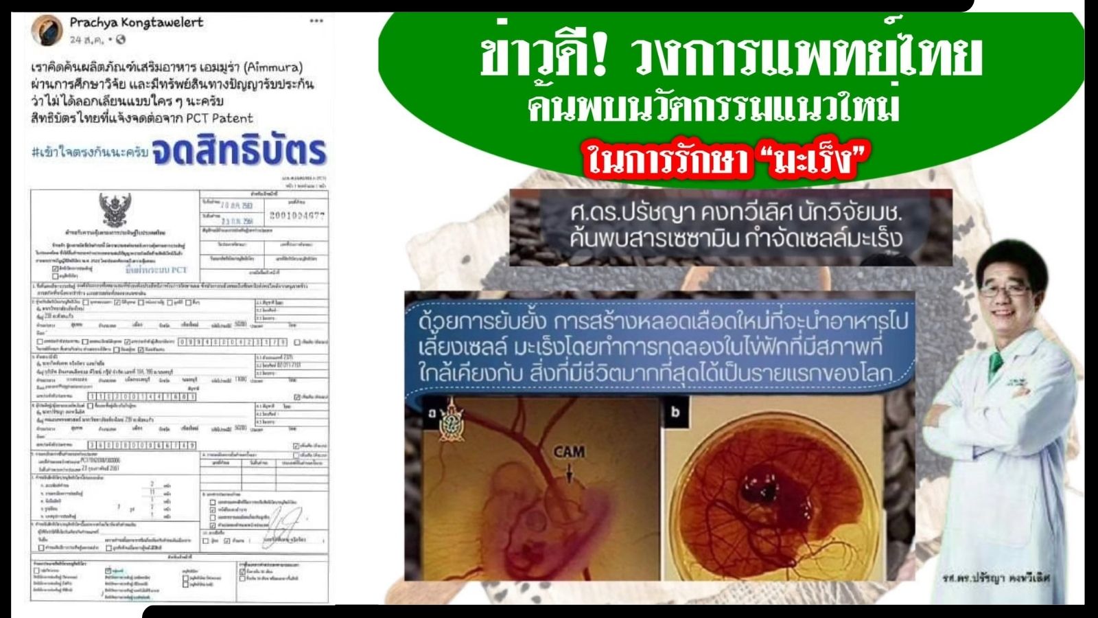ขณะนี้มีการจดสิทธิบัตรไปแล้ว 3 ประเทศ คือ ประเทศไทย กัมพูชา และ ประเทศสหรัฐอเมริกา